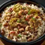 This recipe reflects traditional Southern cooking, where black eyed peas are often eaten on New Year’s Day for good luck, making it a dish filled with cultural meaning and history.