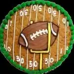 You can decorate it with colored frosting and edible embellishments that resemble a football field or players to make it festive for game day.