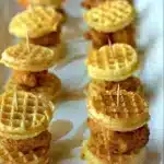 Chicken and Waffle Sliders are a delightful pairing of crispy chicken tucked between warm waffles, usually drizzled with syrup or honey for a sweet and savory experience.