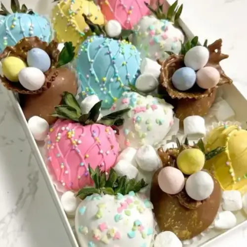 - Sprinkle colorful Easter-themed sprinkles over the dipped strawberries if desired for a joyful touch.