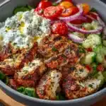 Quick Answer: This recipe for Greek Chicken Bowls combines grilled chicken, fresh vegetables, and tzatziki sauce over a healthy grain base, serving as a deliciously easy meal perfect for any occasion.