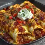 In the heart of the American kitchen, where flavor meets nostalgia, you’ll discover the delightful fusion of Pizza Enchiladas. This recipe is a harmonious blend of Italian and Mexican cuisines, transforming two beloved comfort foods into one unforgettable dish. The warmth of bubbling mozzarella and the savory aroma of seasoned ground beef intertwine seamlessly, making this a perfect centerpiece for family gatherings or casual weeknight dinners. I remember making something akin to these with my childhood friends, giggling and rolling tortillas in my grandmother’s cozy kitchen, a place where every bite echoed with laughter and togetherness. You’ll love how simple yet satisfying it is.