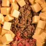 Key Ingredients: Ground beef, Rotel tomatoes, cream cheese, shredded cheddar cheese