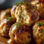 Thanksgiving Stuffing Balls are a delightful twist on the traditional stuffing, capturing all the warm, savory flavors of the season in a convenient, bite-sized form. These spherical delights are a celebration of rich aromas, with every bite offering a combination of crisp edges and a soft, herb-laden center. Picture the golden-brown exterior, perfectly baked to a crisp while harboring tender bread soaked in a magnificent blend of spices, onion, and garlic. I still remember making this recipe with my grandmother, her hands guiding mine as we formed the stuffing into perfect globes while the kitchen filled with warmth and laughter.