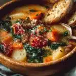 Imagine walking into a warm kitchen filled with the comforting aroma of savory herbs and rich meats simmering away. Tuscany Soup is a hearty, soul-soothing dish that embodies the spirit of rustic Italian cooking. It brings together tender morsels of sweet Italian sausage, crisp bacon, and a medley of fresh vegetables, all enveloped in a creamy base that wraps you in warmth and nostalgia. Reminiscent of gathering around a table with loved ones, this soup promises to transport you to the sun-drenched hills of Tuscany with every spoonful. You’ll love how simple yet satisfying it is.