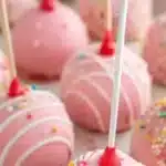 • Optionally, drizzle melted red or pink candy melts over the coated pops.